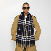 Product Details The iconic Burberry Check cashmere scarf, made in Scotland at a mill founded in 1797. Woven on traditional looms, the scarf takes more than 30 steps to complete. The fabric is washed in local spring water and brushed with teasels – dried flowers that are drawn along the surface of the cashmere to 'raise' the cloth, creating a natural lustre and ultra-soft finish. Part of Burberry Classics, wardrobe foundations with a unique Burberry slant. - Rectangular - Fringing at both ends - Item 80947411 Size & Fit - 168 x 30cm/66.1 x 11.8in Fabric & Care - 100% cashmere - Specialist dry clean - Made in Scotland