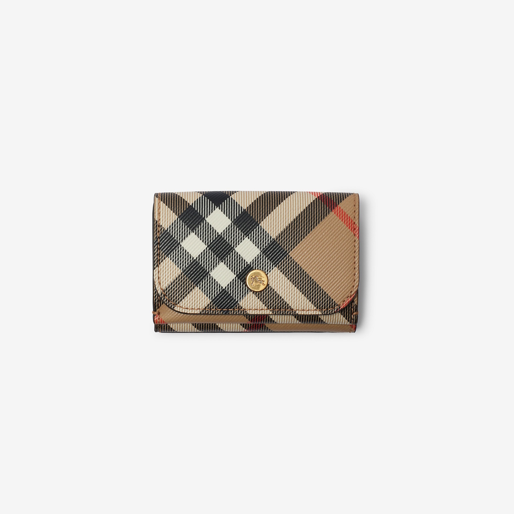 Product Details A wallet in the Burberry Check with a textured twill finish. The design is lined in smooth leather and features press studs engraved with the Equestrian Knight Design. Part of Burberry Classics, wardrobe foundations with a unique Burberry slant. - Foldover top with press-stud closure - Six card slots - Press-stud coin compartment - Note compartment - Hand-painted edges - Brushed metal hardware - Comes with a dust bag - Item 80952911 Size & Fit - 10 x 2.5 x 8cm/3.9 x 1 x 3.2in Fabric & Care - Outer: 55% polyurethane, 25% polyester, 20% cotton - Linings: 100% lambskin; 53% cotton, 47% polyurethane - Imported