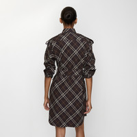 Product Details A shirt dress in cotton flannel woven with the Burberry Check in seasonal truffle brown. The mid-length style is tailored to a relaxed fit with a B buckle belt to adjust the silhouette. Epaulettes at the shoulders are inspired by our signature trench. - Button closure - Point collar - Side slip pockets - Single-button cuffs - Curved hem - Relaxed fit: a looser cut than our regular fit. - Item 81159761 Size & Fit - Length: 96cm/37.8in (size UK 8) - Model’s height: 180cm/5ft 11in. Model wears size UK 8 Fabric & Care - 100% cotton - Buttons: mother-of-pearl - Specialist dry clean - Imported