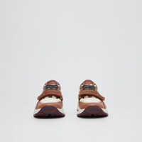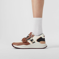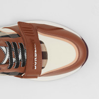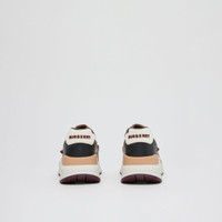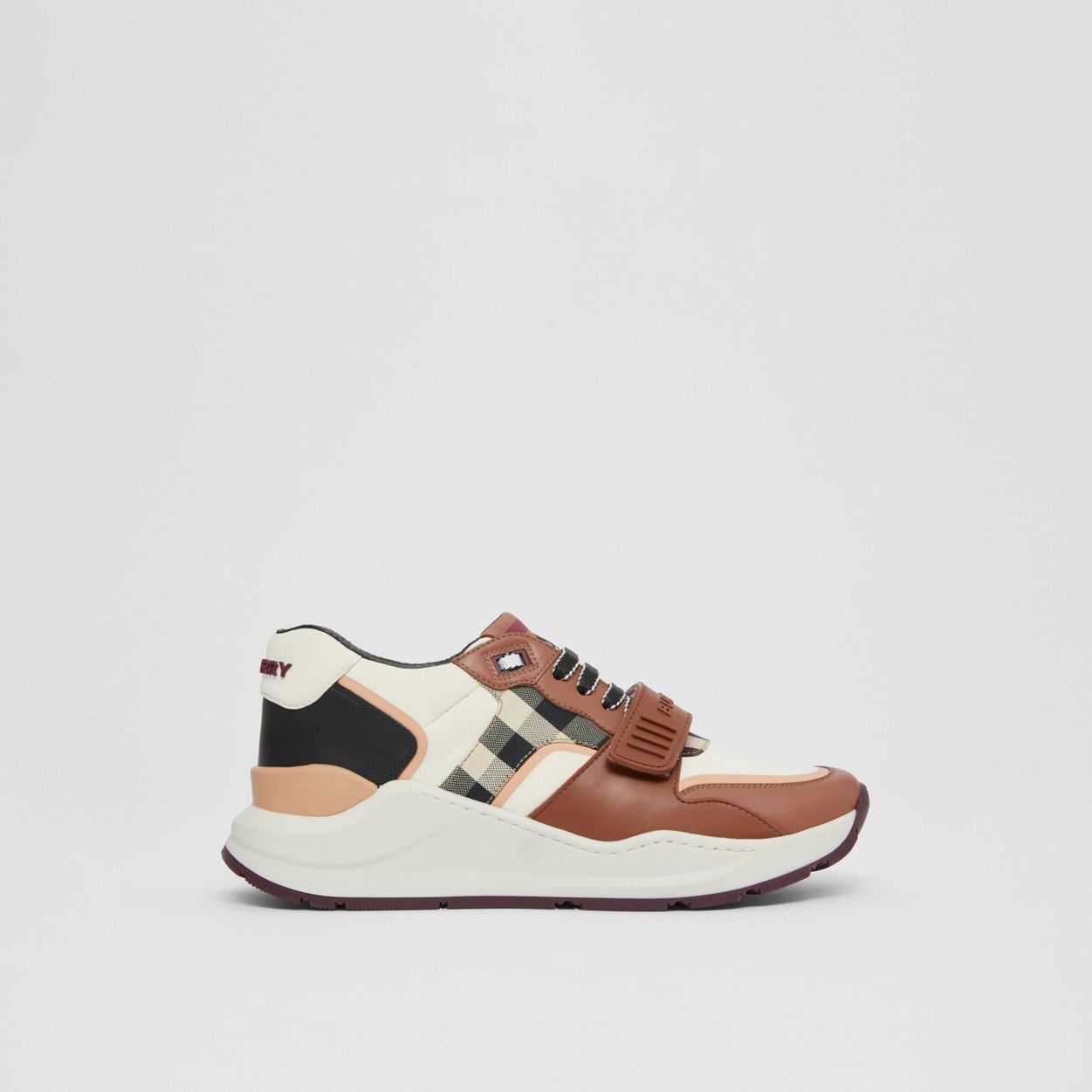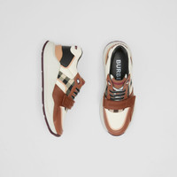 PRODUCT DETAILS Our chunky sneaker reworked in check cotton, nylon and smooth leather. The design is set on an accentuated, curved sole and detailed with our logo. Upper: 50% polyamide, 25% cotton, 15% calf leather, 10% elastane Trim: 50% rubber, 30% polyester, 10% polyamide, 10% zinc alloy Lining: 90% sheep leather, 7% polyester, 3% polyurethane Sole: 100% rubber Lace-up and Velcro tab closure Raised Burberry lettering at heel and strap Made in Italy 80588741