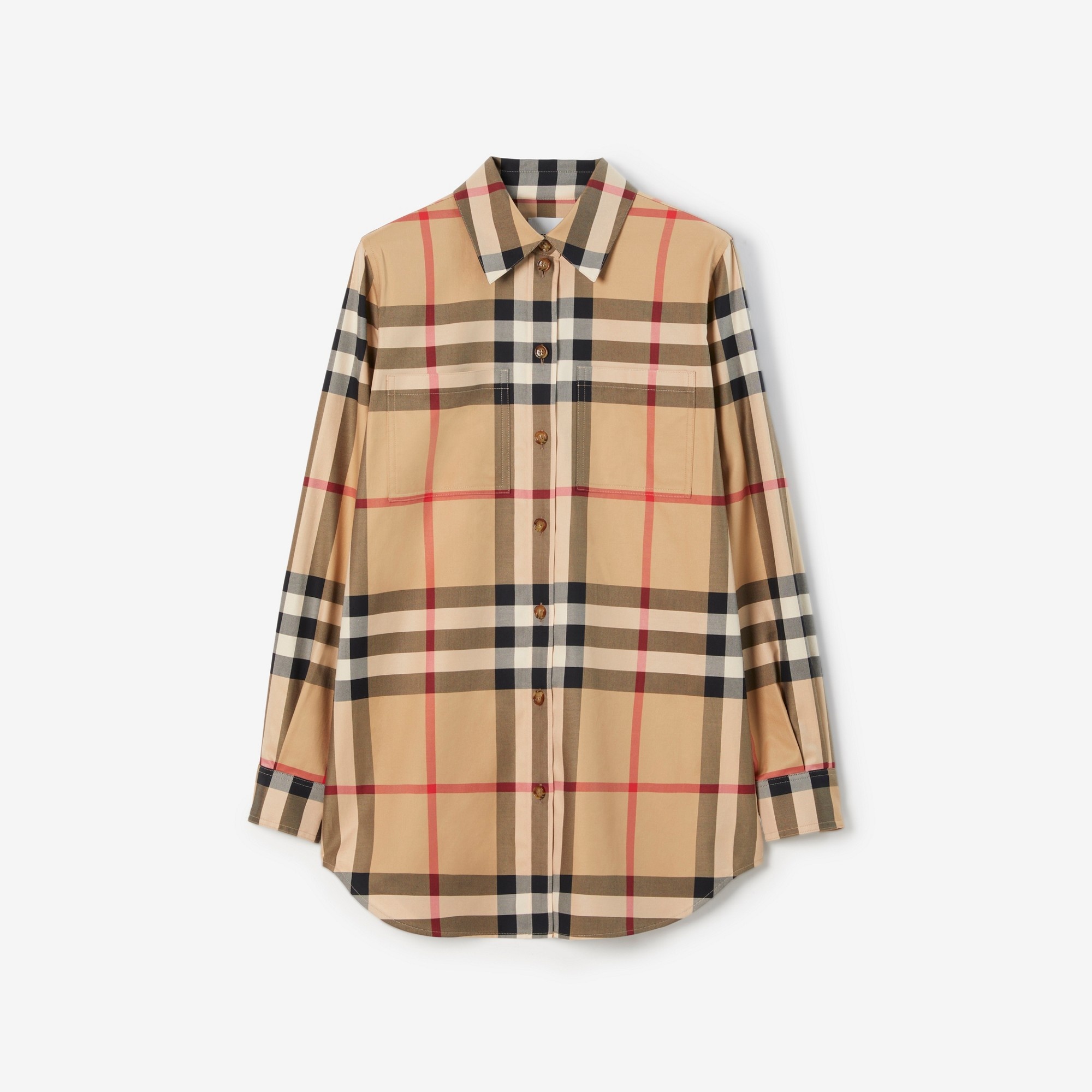 PRODUCT DETAILS Burberry Check - Length: 77cm/30.3in (size UK 6) - Model’s height: 177cm/5ft 10in. Model wears size UK 6 Regular fit 100% cotton Machine wash Imported Item 80713381
