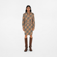 Product Details A shirt dress in cotton twill, woven in Italy with the Burberry Check. The mid-length style is tailored to a relaxed fit with a B buckle belt to adjust the silhouette. Epaulettes at the shoulders are inspired by our signature trench. Part of Burberry Classics, wardrobe foundations with a unique Burberry slant. - Button closure - Point collar - Side slip pockets - Single-button cuffs - Curved hem - Relaxed fit: a looser cut than our regular fit. Consider taking a size down. - Item 80866101 Size & Fit - Length: 96cm/37.8in (size UK 6) - Model’s height: 180cm/5ft 11in. Model wears size UK 6 Fabric & Care - 100% cotton* - Buttons: mother-of-pearl - *100% of the cotton in the main material is organic - Dry clean - Imported