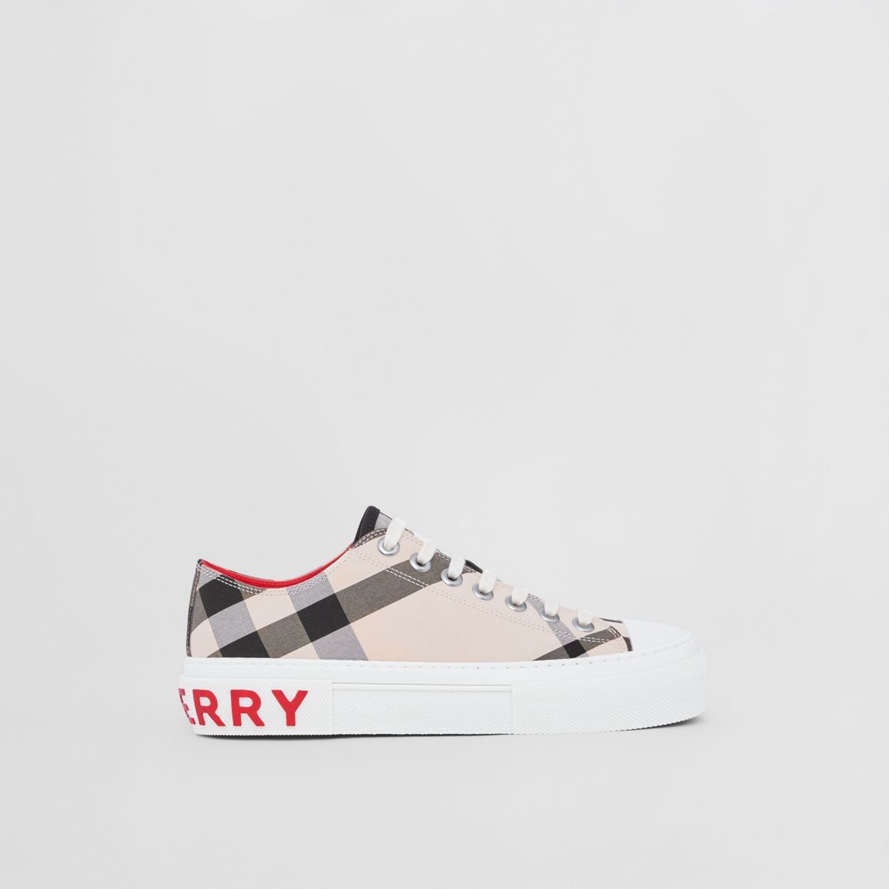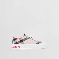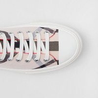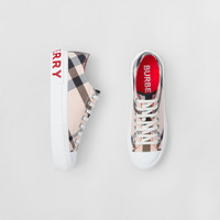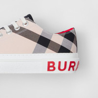 PRODUCT DETAILS Sneakers in Italian-woven cotton, highlighted with our signature check and contrasting logo. Upper: 100% cotton Trim: 50% polyester, 50% brass Lining: 100% cotton Sole: 100% rubber Lace-up closure Embossed Burberry lettering at heel Made in Italy 80525651