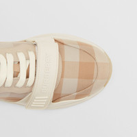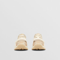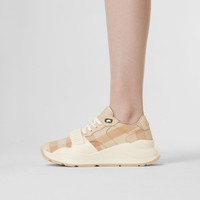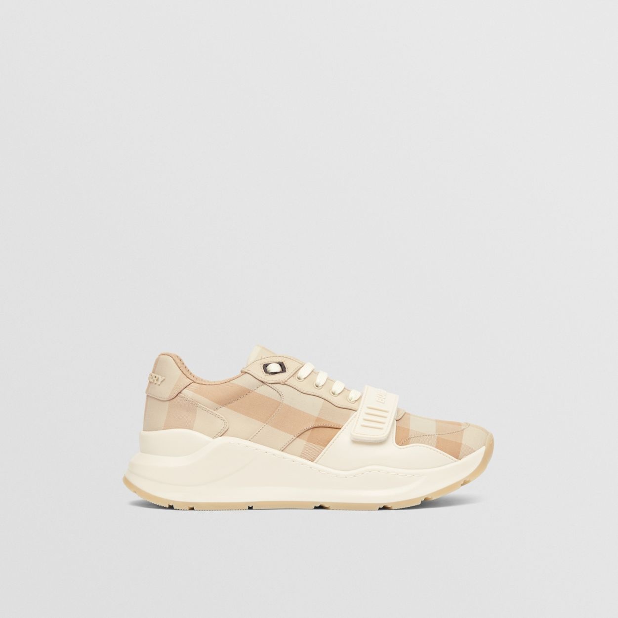 PRODUCT DETAILS Our chunky sneaker reworked in check cotton. The design is set on an accentuated, curved sole and detailed with our logo. Upper: 99% cotton, 1% calf leather Trim: 90% polyester, 10% thermoplastic polyurethane Lining: 52% polyester, 41% sheep leather, 7% goat suede Sole: 100% rubber Lace-up and Velcro tab closure Raised Burberry lettering at strap and heel Made in Italy 80539911