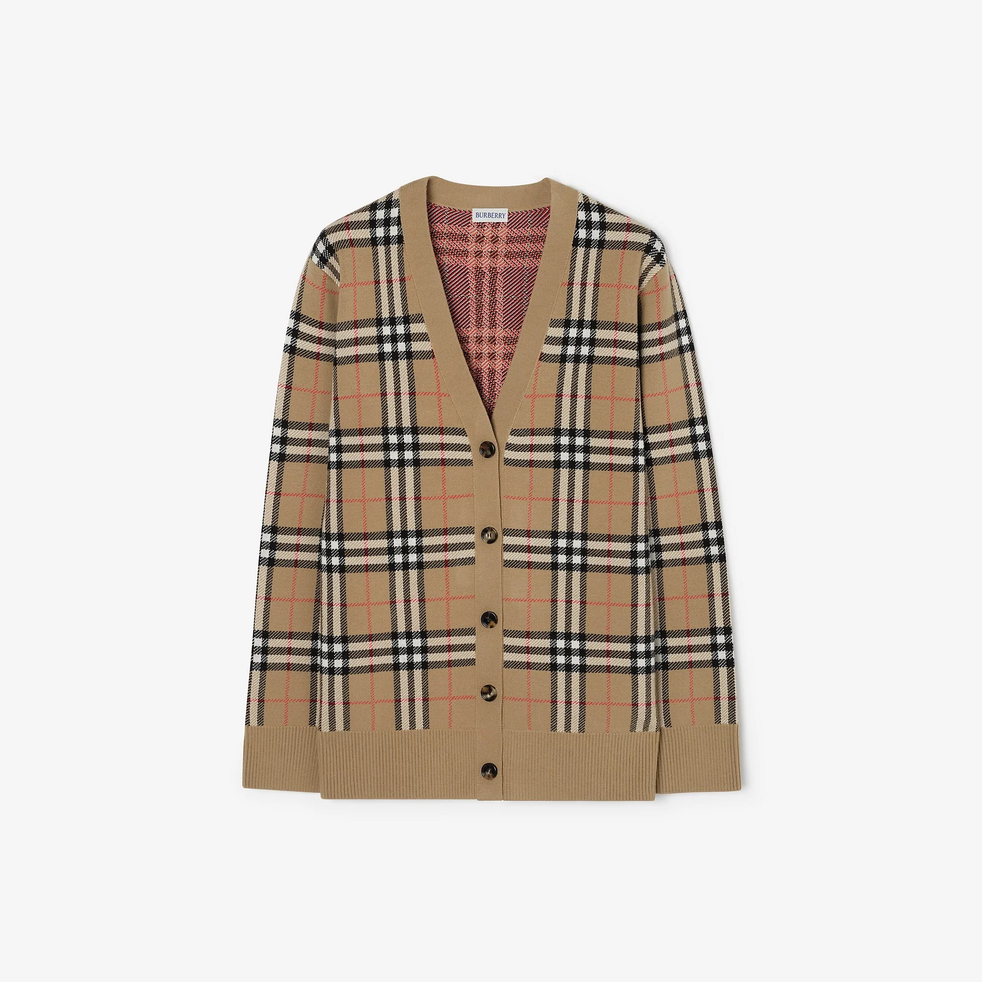 Product Details Relaxed fit: a looser cut than our regular fit. A cardigan in lightweight cotton wool with a hint of stretch, cut to a relaxed fit. The design is jacquard-knitted with the Burberry Check in signature sand beige. - Button closure - Rib-knit trims - Item 81219301 Size & Fit - Relaxed fit: a looser cut than our regular fit. - Length: 69cm/27.2in (size UK S) Fabric & Care - 62% cotton, 34% wool, 3% polyamide, 1% elastane - Trim: 95% wool, 4% polyamide, 1% elastane - Buttons: buffalo horn - Specialist dry clean - Imported