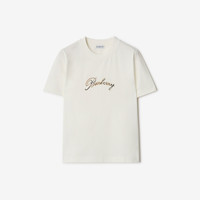 Product Details A crew-neck T-shirt cut to a regular fit in lightweight cotton jersey. The design features a cursive logo in chain-stitch embroidery filled with the Burberry Check. - Rib-knit neckline - Embroidered Burberry lettering at chest - Regular fit. Fits true to size, take your normal size. - Machine wash - Item 81189711 Size & Fit - Length: 61cm/24in (size UK S) - Model’s height: 178cm/5ft 10in. Model wears size UK S Fabric & Care - 100% cotton - Trims: 97% cotton, 3% elastane; 100% cotton - Made in Portugal