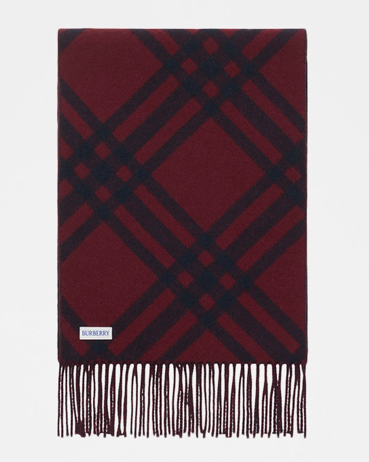 Burberry doublefaced cashmere scarf, woven with a seasonal check pattern and washed for an ultrasoft finish and raised nap Fringed edges Logo label Approx. 66"L x 11.0"W Cashmere Professional cleaning recommended Imported