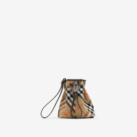 Product Details A compact pouch in soft cotton twill, jacquard-woven with the Burberry Check. The style features a smooth calf leather drawcord and wrist strap. Part of Burberry Classics, wardrobe foundations with a unique Burberry slant. - Leather wrist strap - Drawcord closure - Hand-painted edges - Brushed metal hardware - Unlined - Comes with a dust bag - *Containing organic cotton - Item 80939161 Size & Fit - 16 x 10.5 x 18cm/6.3 x 4.1 x 7.1in Fabric & Care - 100% cotton* - Trim: 100% calf leather - Imported