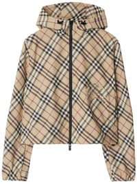 Check jacket Highlights - Beige - Textured finish - Check pattern - Front two-way zip fastening - Drawstring hood - Long sleeves - Elasticated cuffs - Appliqued equestrian knight design - Two side welt pockets - Straight hem Imported Composition Outer: Polyester 100% Lining: Polyamide 100% SIZE & FIT Measurement SLEEVE LENGTH 24.48 in(62.2 cm) LENGTH 20 in(50.8 cm) WAIST 42 in(106.7 cm) BUST 42 in(106.7 cm)