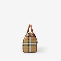 Product Details A bowling bag made in Italy from Burberry Check and lined in cotton. The design is trimmed in smooth leather and features a leather-wrapped padlock and key. - Leather top handles - Detachable, adjustable shoulder strap - Zip closure - Hand-painted edges - Polished metal hardware - Leather-wrapped padlock and key - Cotton lining - Item 80713551 Size & Fit - 30 x 15 x 21cm/11.8 x 5.9 x 8.3in . Min. strap drop: 37.5cm/14.8in . Max. strap drop: 42.5cm/16.7in Fabric & Care - Outer: 54% polyurethane, 35% cotton, 11% polyester* - Trim: 100% calf leather - Lining: 100% cotton - *The main material of this product is made with at least 30% bio-based materials - Bio-based materials are derived from renewable natural resources such as plants - Made in Italy