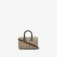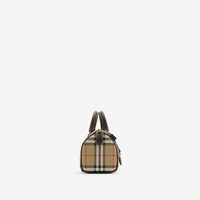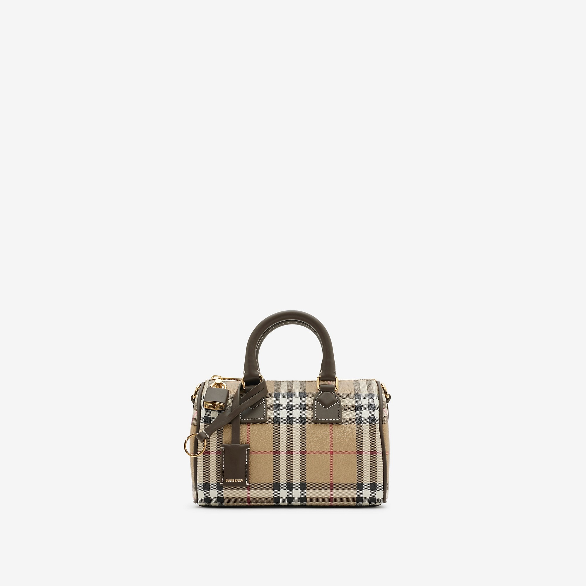 Product Details A bowling bag made in Italy from a coated cotton blend printed with the Burberry Check and lined in cotton. The compact design is trimmed in smooth calf leather and features a leather-wrapped padlock and key. A detachable strap switches the style to a shoulder bag. - Leather top handles - Detachable, adjustable shoulder strap - Zip closure - Hand-painted edges - Polished metal hardware - Leather-wrapped padlock and key - Cotton lining - Comes with a dust bag - Item 80975981 Size & Fit - 18.5 x 11 x 12cm/7.3 x 4.3 x 4.7in. Min. strap drop: 47.5cm/18.7in. Max. strap drop: 52.5cm/20.7in Fabric & Care - Outer: 54% polyurethane, 35% cotton, 11% polyester* - Trim: 100% calf leather - Lining: 100% cotton - **The main material of this product is made with at least 30% bio-based materials - Bio-based materials are derived from renewable natural resources such as plants - Made in Italy