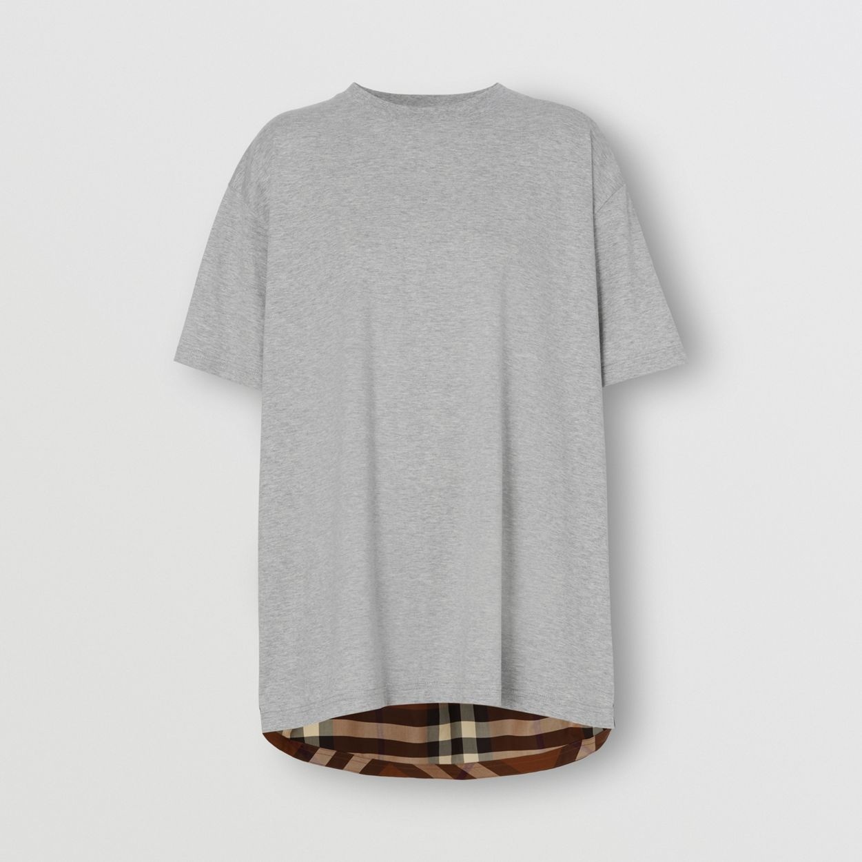 PRODUCT DETAILS An oversized cotton jersey T-shirt, styled with a stepped, curved hem. The design is accented with a woven check back panel. This style fits large to size. For a regular fit, please take a size smaller than normal. T-shirt length: 74cm/29.1in. This is based on a size UK S as proportions change slightly according to size. Model’s height: 180cm/5ft 11in. Model wears size UK XS. Outer: 100% cotton Panel: 100% cotton Trim: 97% cotton, 3% elastane Machine wash Imported 80489251