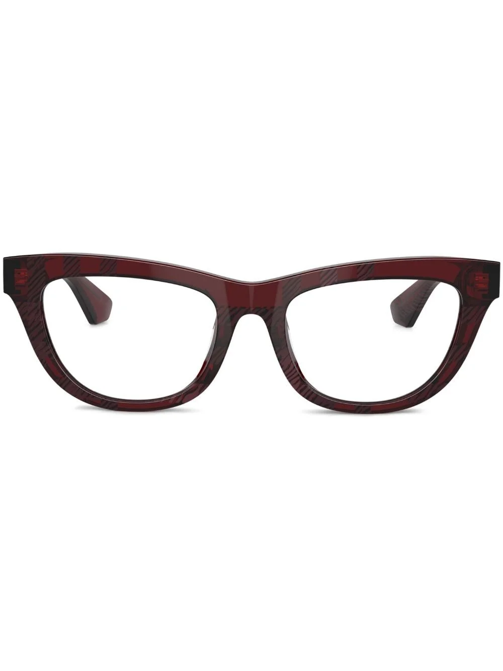 check-pattern cat-eye glasses Highlights - Bordeaux red - Acetate - Cat-eye frame - Clear lenses - Check pattern - Gold-tone logo plaque - Straight arms - Curved hem - These glasses come with a protective case. - All glasses from farfetch are sold as non-prescription frames. Made in United States Composition Acetate 100% SIZE & FIT Measurement Arm Length 5.51 in(14 cm) Bridge Width 0.7 in(1.8 cm) Lens Diameter 2.04 in(5.2 cm)