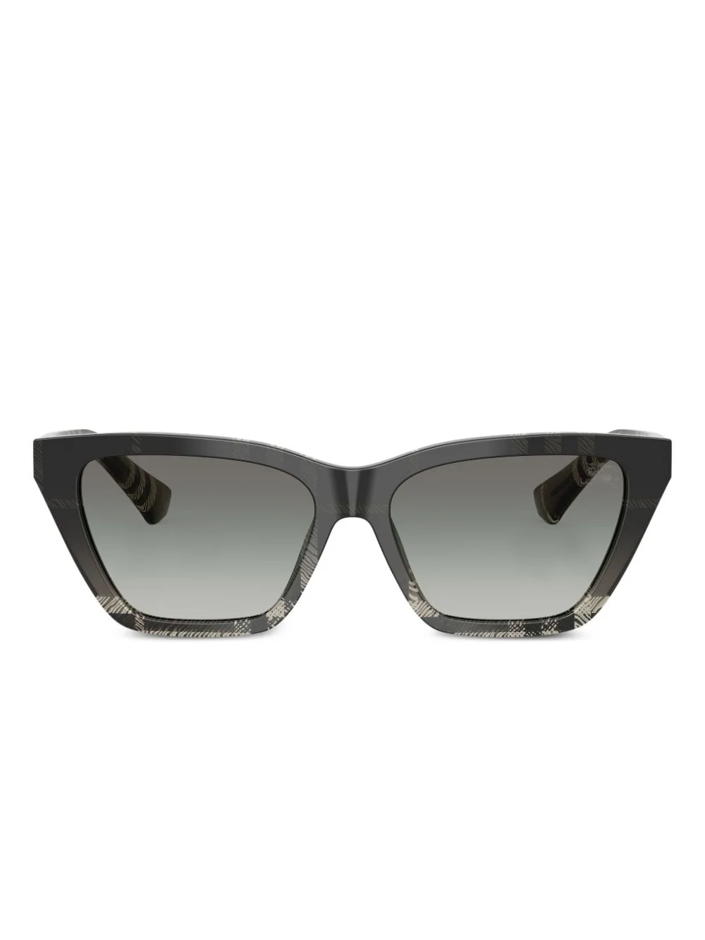 check-pattern cat-eye sunglasses Highlights - Grey - Cat-eye frame - Check pattern - Acetate material - Gradient lenses - These glasses come with a protective case. Made in United States Composition Acetate 100%