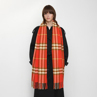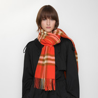Product Details A Burberry Check cashmere scarf, made in Scotland at a mill founded in 1797. Woven on traditional looms, the fabric is washed in local spring water and brushed with teasels – dried flowers that are drawn along the surface of the cashmere to 'raise' the cloth, creating a natural lustre and ultra-soft finish. Two further washes are given for a fuller texture. - Rectangular - Fringing at both ends - Item 81139461 Size & Fit - 200 x 52cm/78.7 x 20.5in Fabric & Care - 100% cashmere - Specialist dry clean - Made in Scotland