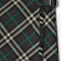 Product Details A mini kilt made in Scotland from a wool blend woven with the Burberry Check. The design is tailored with a pleated back and leather B buckle strap. - Side button and B buckle closure - Eyelash fringing at the edges - Regular fit. Fits true to size, take your normal size. - Item 80953951 Size & Fit - Length: 40cm/15.8in (size UK 6) - Model’s height: 173cm/5ft 8in. Model wears size UK 6 Fabric & Care - 55% polyester, 45% wool - Trim: 100% leather - Buttons: buffalo horn - Dry clean - Made in Scotland