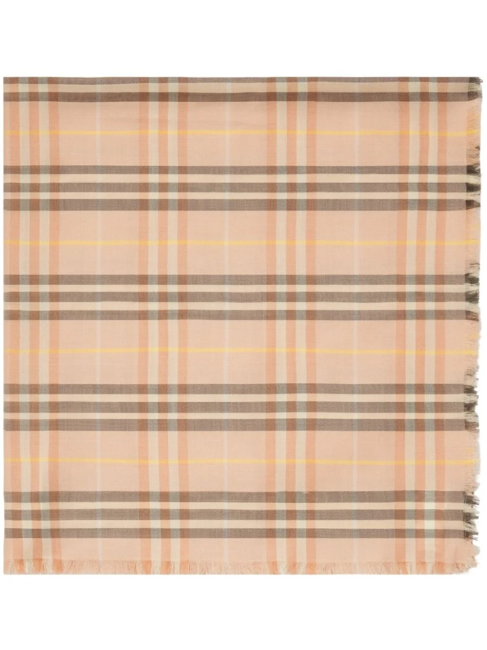 check-pattern scarf Highlights - Sand beige - Cashmere-silk blend - Check pattern - Fringe detail at the toe - Rectangle shape Made in Italy Composition Cashmere 70%, Silk 30% SIZE & FIT Measurement LENGTH 78.74 in(200 cm) WIDTH 39.37 in(100 cm)