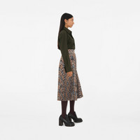 Pleated Check Wool Blend Skirt