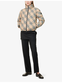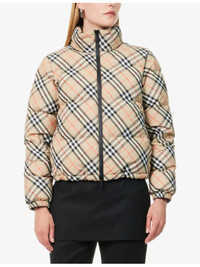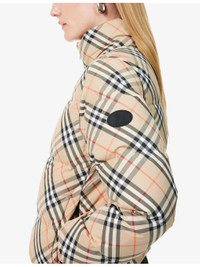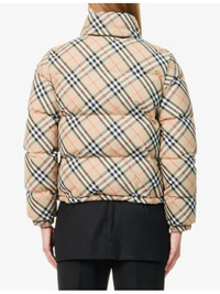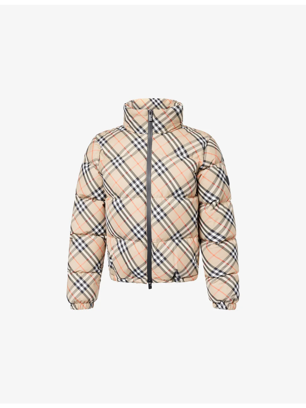 PRODUCT DETAILS - Burberry shell-down jacket - 100% polyester; filling 90% down, 10% feathers; lining 100% polyamide - Concealed zip fastening at front - Regular fit, high-neck, concealed hood, long sleeves, two zip pockets at front, all-over check print, all-over quilted and padded, fully lined, drawstring hem - Machine wash at 30°C - True to size - Size small: length 20in / 52cm - Model is 5ft 10in/1.78m and wears a size small - Midweight, non-stretch Ref: R04486192
