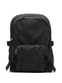 check-print jacquard backpack Highlights - Black - Calf leather - Check print - Jacquard - Decorative buckle detail - Adjustable shoulder straps - Top zip fastening - Front zip-fastening pocket - Main compartment Imported Composition Lining: Polyamide 100% Outer: Calf Leather 100%, Polyamide 78%, Polyester 22% SIZE & FIT Measurement DEPTH 7.08 in(18 cm) HEIGHT 18.5 in(47 cm) WIDTH 12.2 in(31 cm)