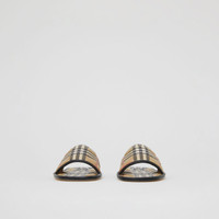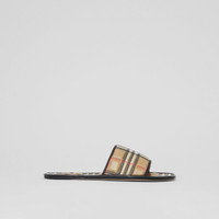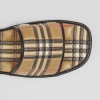 PRODUCT DETAILS Italian-crafted slides in quilted lambskin, animated with our archival Vintage check. The design sits on a flat leather sole. Upper: 95% lambskin, 5% sheep leather Lining: 100% lambskin Sole: 100% leather Slip-on style Made in Italy 80565871