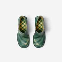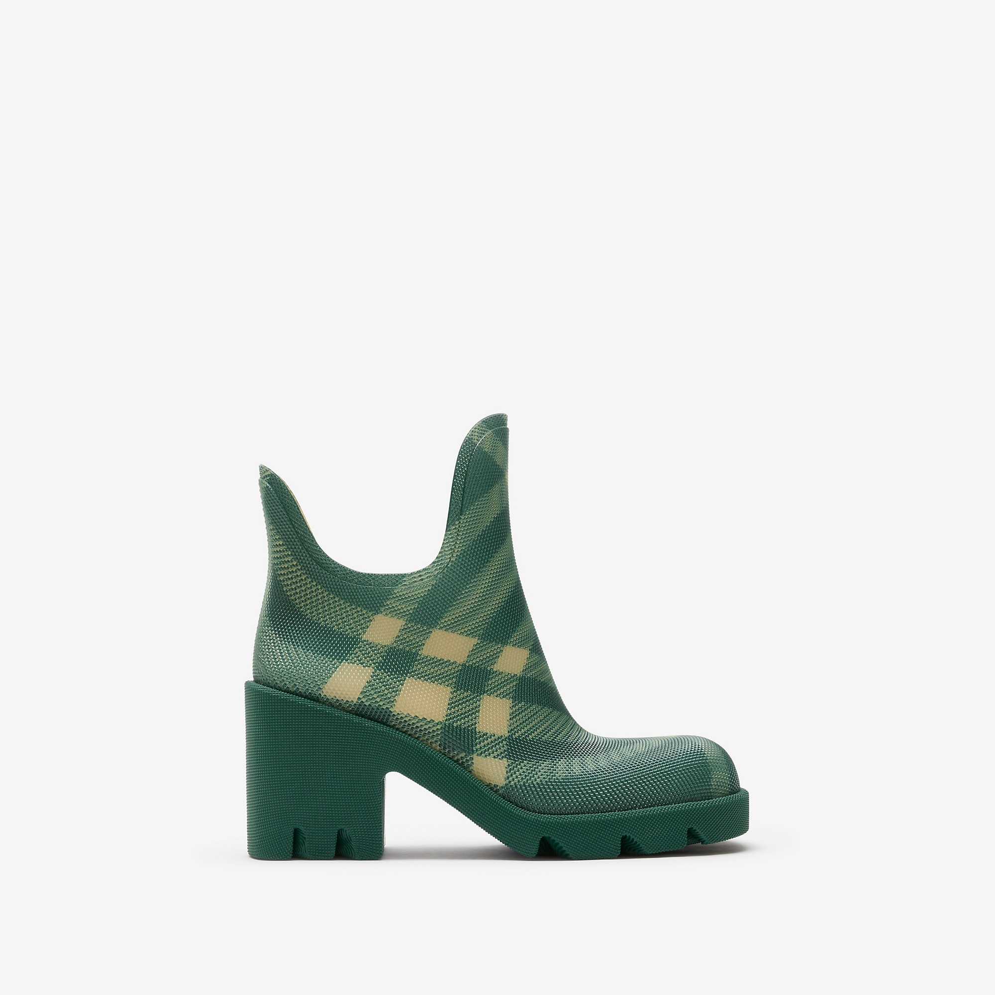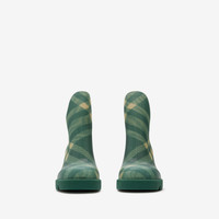 PRODUCT DETAILS Italian-made ankle boots in transparent rubber with a check lining. Inspired by wellies, the design is set on a chunky sole featuring archival Burberry lettering. - Heel height: 6.5cm/2.6in Upper: 100% rubber Lining: 80% polyester, 16% polyamide, 4% elastane Sole: 100% rubber Made in Italy Item 80812501