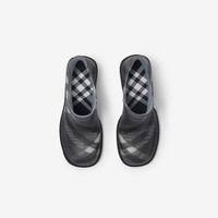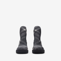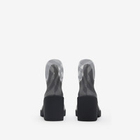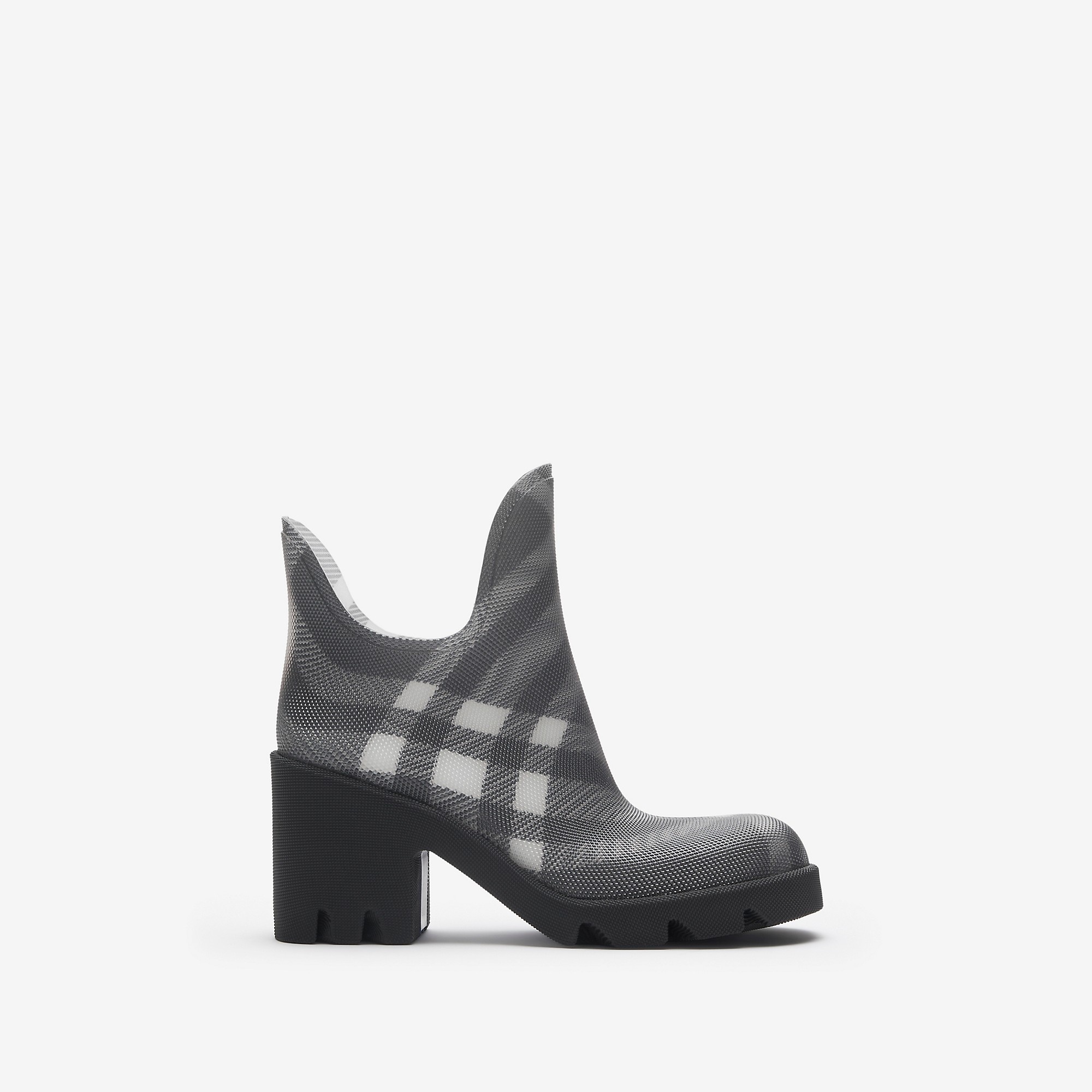 PRODUCT DETAILS Italian-made ankle boots in transparent rubber with a check lining. Inspired by wellies, the design is set on a chunky sole featuring archival Burberry lettering. - Heel height: 6.5cm/2.6in Upper: 100% rubber Lining: 80% polyester, 16% polyamide, 4% elastane Sole: 100% rubber Made in Italy Item 80833801