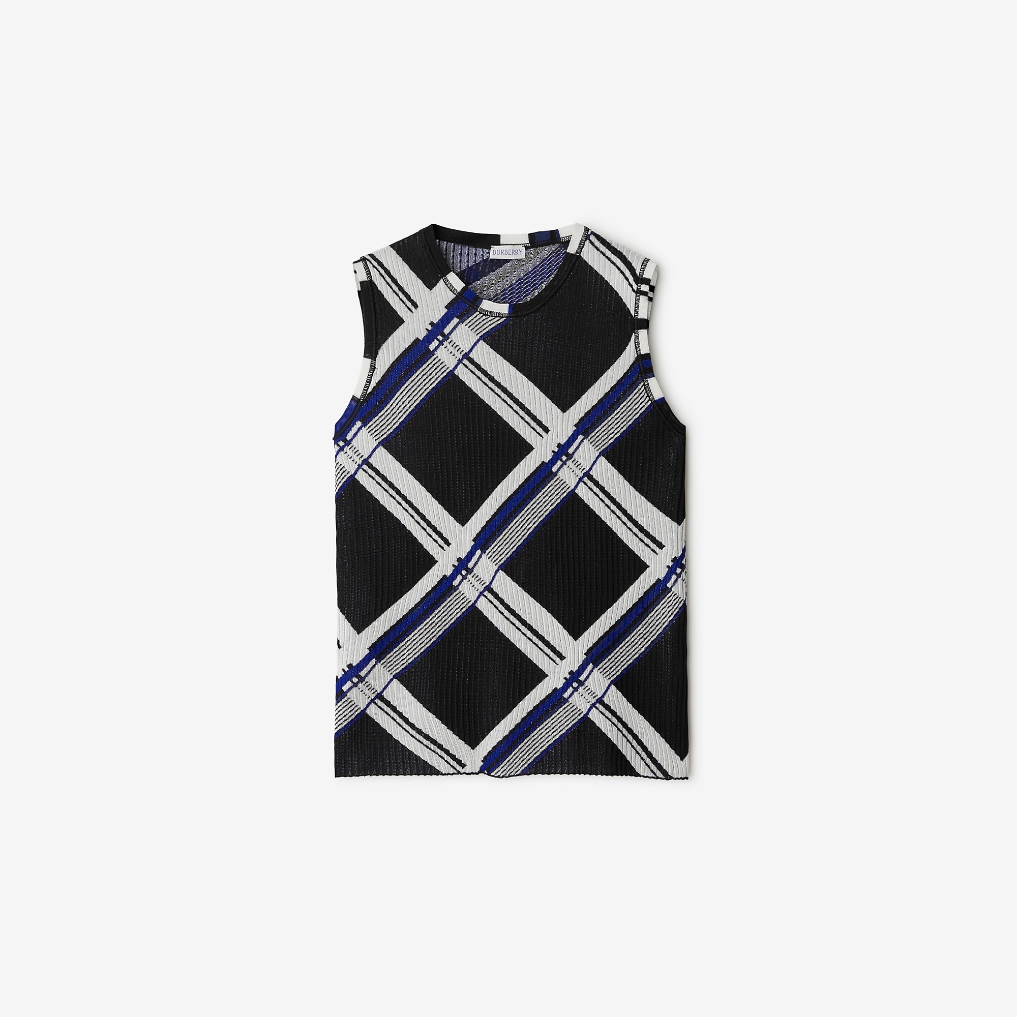 PRODUCT DETAILS A crew-neck vest made in Italy from silk, jacquard-knitted with a seasonal check. The style is cut to a slim fit. - Length: 62.5cm/24.6in (size UK S) - Model’s height: 180cm/5ft 11in. Model wears size UK S Slim fit: this style is cut to a fitted silhouette. Fits true to size, take your normal size. 100% silk Specialist dry clean Made in Italy Item 80888961