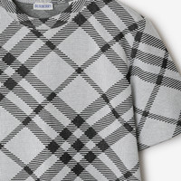 Product Details A T-shirt made in Italy from a ribbed stretch cotton-blend jersey, jacquard-knitted the Burberry Check. The crew-neck style is cut to a regular fit. - Regular fit. Fits true to size, take your normal size. - Machine wash - Item 80880611 Size & Fit - Length: 61cm/24in (size UK S) - Model’s height: 180cm/5ft 11in. Model wears size UK S Fabric & Care - 85% cotton, 12% polyester, 3% elastane - Made in Italy