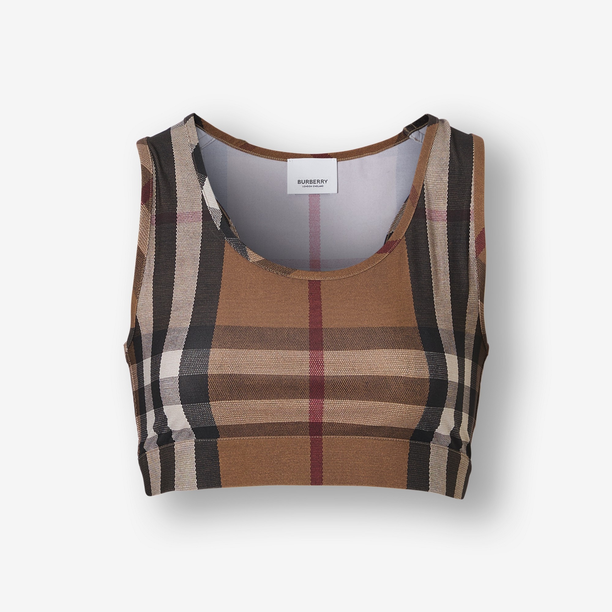 PRODUCT DETAILS A racer-back cropped top in second-skin stretch jersey, animated with a check print. - Top length: 32.5cm/12.8in. This is based on a size UK S as proportions change slightly according to size. - Model’s height: 180cm/5ft 11in. Model wears size UK S. 59% polyamide, 41% elastane Machine wash Imported Item 80434281