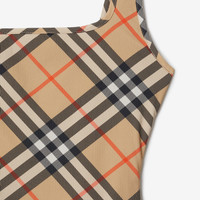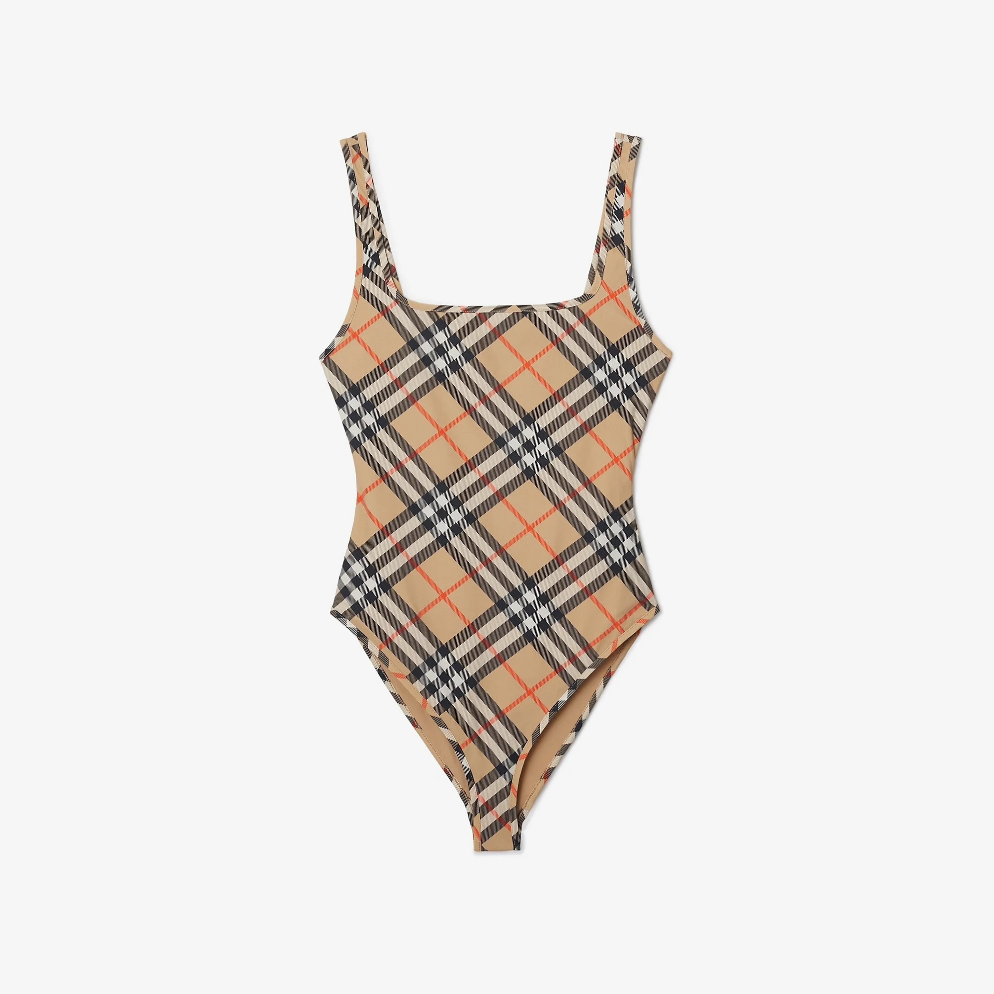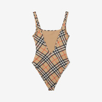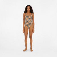 PRODUCT DETAILS A scoop-back swimsuit in stretch nylon, printed with the Burberry Check. Comes with a matching drawstring bag. - Model’s height: 177cm/5ft 10in. Model wears size UK S Outer: 73% polyamide, 27% elastane* Lining: 59% polyamide, 41% elastane Bag: 73% polyamide, 27% elastane Machine wash Made in Portugal *The main material of this product is made with at least 50% recycled content. Item 80896771