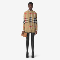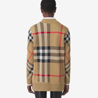 Product Details A V-neck cardigan jacquard-knitted with the Burberry Check. - Button closure - Rib-knit trims - Relaxed fit: a looser cut than our regular fit. Consider taking a size down. - Item 80391531 Size & Fit - Length: 74cm/29.1in (size UK S) - Model’s height: 176cm/5ft 9in. Model wears size UK S Fabric & Care - 51% polyester, 49% wool - Trim: 98% wool, 1% elastane, 1% polyamide - Specialist dry clean - Imported