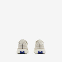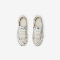 Product Details Italian-made sneakers in a nylon blend woven with the Burberry Check. The style features matching check laces and the soles are moulded with archive Burberry lettering. - Lace-up closure - Equestrian Knight Design label at tongue - Burberry lettering at sole - Comes with a dust bag - Item 81070901 Fabric & Care - Upper: 96% polyamide, 3% polyurethane, 1% calf leather* - Trim: 70% polyester, 30% brass - Lining: 62% sheep leather, 33% calf leather, 5% goat suede - Sole: 100% thermoplastic polyurethane* - *The main material and the sole of this product are made with at least 50% recycled content - Made in Italy