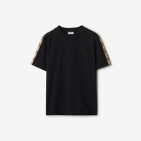 Product Details A T-shirt in lightweight cotton jersey, cut to a regular fit. The design is embroidered with the Equestrian Knight Design and framed with Burberry Check taping at the sleeves. - Rib-knit neckline - Embroidered Equestrian Knight Design at chest - Regular fit. Fits true to size, take your normal size. - Machine wash - Item 81062821 Size & Fit - Length: 61cm/24in (size UK S) - Model’s height: 180cm/5ft 11in. Model wears size UK S Fabric & Care - 100% cotton - Trim: 98% cotton, 2% elastane - Imported