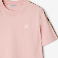Product Details A T-shirt in lightweight cotton jersey, cut to a regular fit. The style is embroidered with the Equestrian Knight Design and framed with Burberry Check taping at the sleeves in signature archive beige. - Rib-knit neckline - Embroidered Equestrian Knight Design at chest - Regular fit. Fits true to size, take your normal size. - Machine wash - Item 81103521 Size & Fit - Length: 61cm/24in (size UK S) - Model’s height: 180cm/5ft 11in. Model wears size UK S Fabric & Care - 100% cotton - Trim: 98% cotton, 2% elastane - Imported