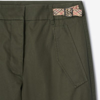 Product Details Relaxed fit: a looser cut than our regular fit. Cargo trousers made from shower-resistant cotton gabardine. The style features Burberry Check trims at the waist in signature archive beige, with B buckles to adjust the relaxed fit. - Hook, button and zip closure - B buckle waist adjusters - Hip flap pockets, side flap patch pockets, back flap pockets - Item 81184201 Size & Fit - Relaxed fit: a looser cut than our regular fit. - Inside leg length: 84cm/33.1in (size UK 8) - Model’s height: 178cm/5ft 10in. Model wears size UK 8 Fabric & Care - 100% cotton - Pocket lining: 100% cotton - Buttons: buffalo horn - Specialist dry clean - Imported