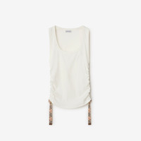 Product Details A rib-knit vest in stretch cotton. Cut to a slim fit, the ruched sides can be adjusted with the Burberry Check side straps and B buckles. - Slim fit: this style is cut to a fitted silhouette. Fits true to size, take your normal size. - Machine wash - Item 81091971 Size & Fit - Length: 54.5cm/21.5in (size UK S) - Model’s height: 176cm/5ft 9in. Model wears size UK S Fabric & Care - 95% cotton, 5% elastane - Trim: 100% polyester - Made in Portugal