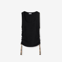 Product Details Debuted on the Burberry Summer 2025 runway, a rib-knit vest in stretch cotton. Cut to a slim fit, the ruched sides can be adjusted with the Burberry Check side straps and B buckles. - Slim fit: this style is cut to a fitted silhouette. Fits true to size, take your normal size. - Machine wash - Item 81091961 Size & Fit - Length: 54.5cm/21.5in (size UK S) - Model’s height: 176cm/5ft 9in. Model wears size UK S Fabric & Care - 95% cotton, 5% elastane - Trim: 100% polyester - Made in Portugal