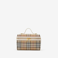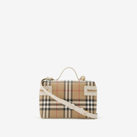 Product Details A compact bag made in Italy from a cotton blend, printed with the Burberry Check in signature archive beige and trimmed with topstitched calf leather. The structured silhouette is inspired by vanity cases, opening to a single main compartment. Carry by the top handle, across the body or on the shoulder using the detachable strap. - Leather top handle - Detachable, adjustable leather strap - Two-way zip closure - Two card slots - Hand-painted edges - Brushed metal hardware - Cotton lining - Comes with a dust bag - Item 81251351 Size & Fit - 19.5 x 8 x 15cm/7.7 x 3.2 x 5.9in. Min. strap drop: 49.5cm/19.5in. Max. strap drop: 61.5cm/24.2in Fabric & Care - Outer: 55% polyurethane, 25% polyester, 20% cotton - Trim: 100% calf leather - Lining: 100% cotton - Made in Italy