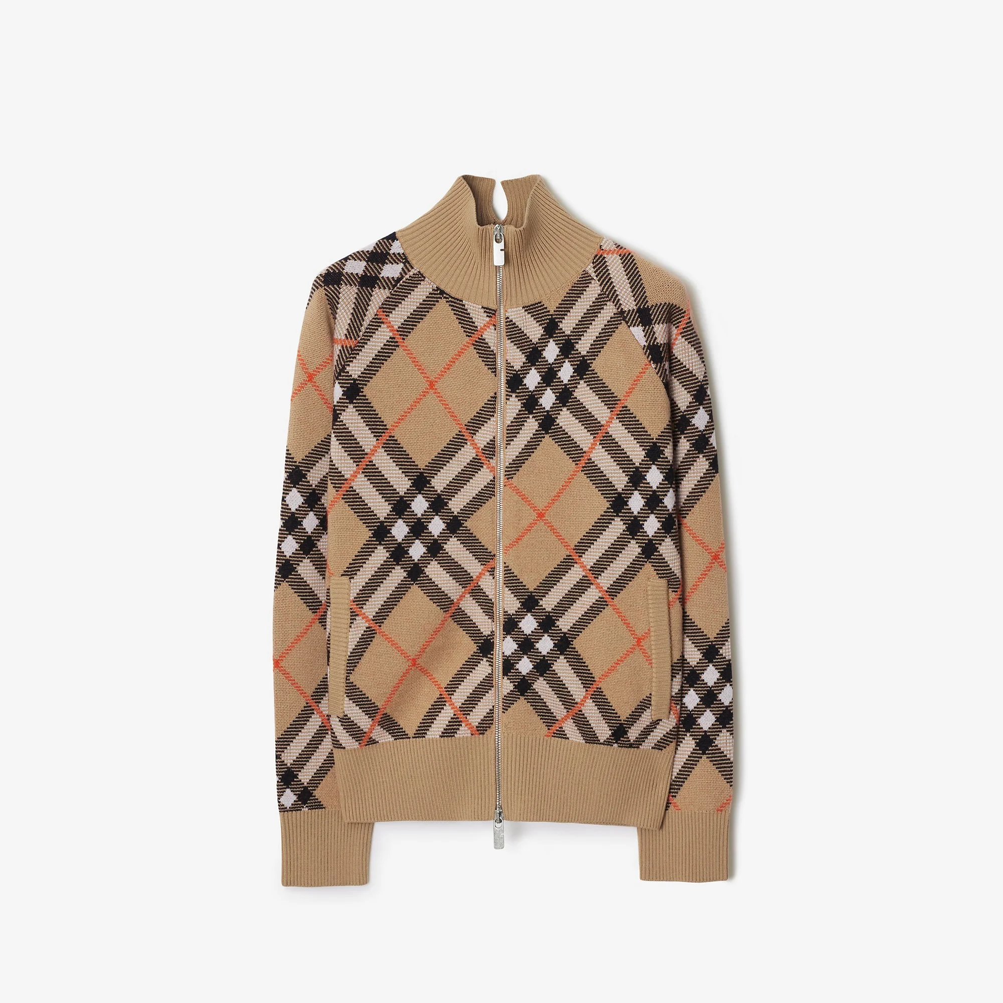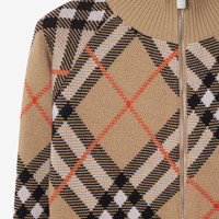 Product Details A track jacket in a wool mohair blend knitted with the Burberry Check. The funnel-neck style is cut to a relaxed fit. Part of Burberry Classics, wardrobe foundations with a unique Burberry slant. - Two-way zip closure - Side welt pockets - Rib-knit trims - Comes with a garment bag - Relaxed fit: a looser cut than our regular fit. Consider taking a size down. - Item 80949751 Size & Fit - Length: 59.5cm/23.4in (size UK S) - Model’s height: 178cm/5ft 10in. Model wears size UK S Fabric & Care - 87% wool, 7% mohair, 5% polyamide, 1% elastane - Trim: 94% wool, 5% polyamide, 1% elastane - Pockets: 100% wool - Specialist dry clean - Imported
