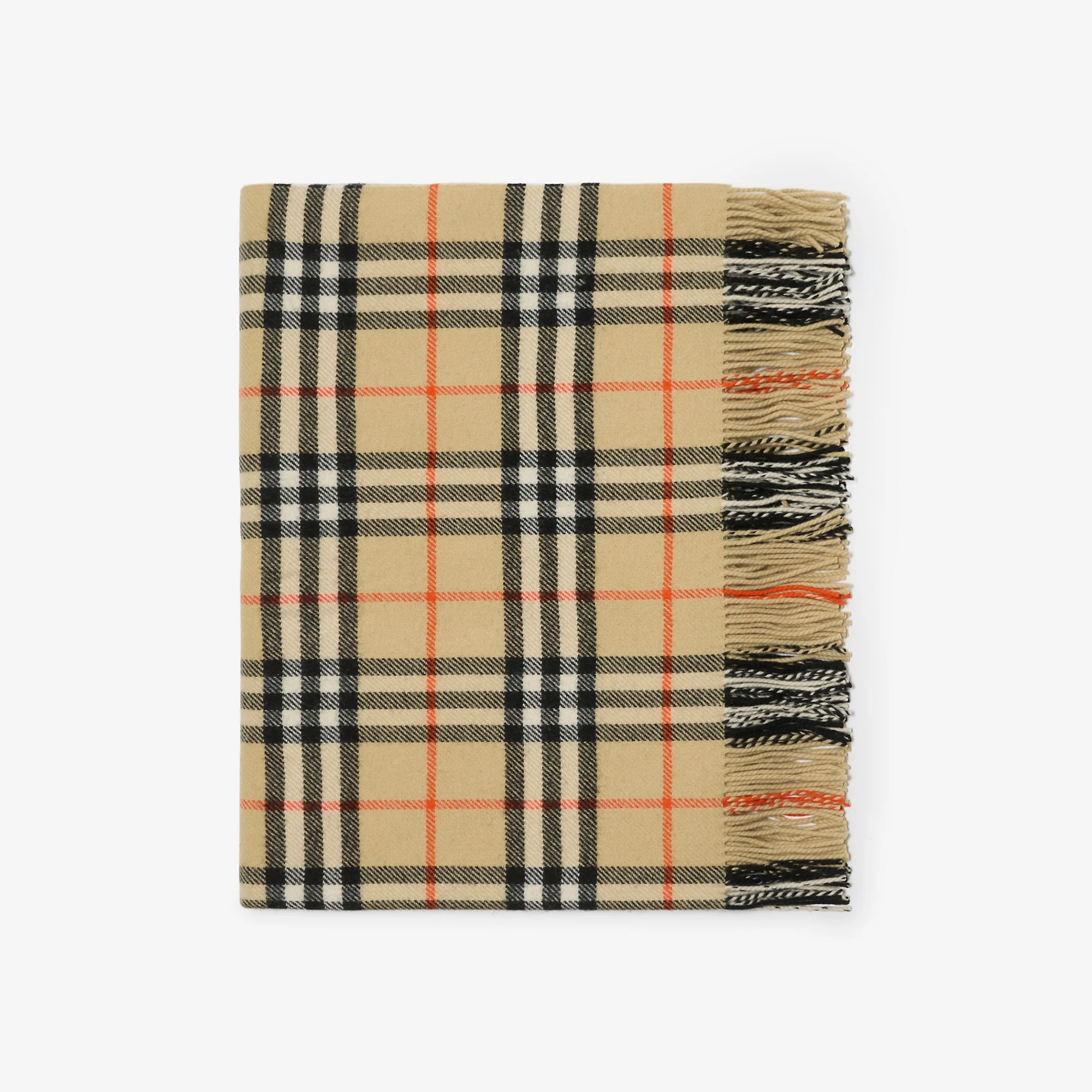 Product Details A blanket in wool cashmere woven with the Burberry Check. Made at a 200-year-old Scottish mill, the fabric is washed in local spring water and brushed with teasels for an ultra-soft finish. Part of Burberry Classics, wardrobe foundations with a unique Burberry slant. - Rectangular - Fringing at both ends - Item 80965421 Size & Fit - 200 x 140cm/78.7 x 55.1in Fabric & Care - 54% wool, 46% cashmere - Specialist dry clean - Made in Scotland