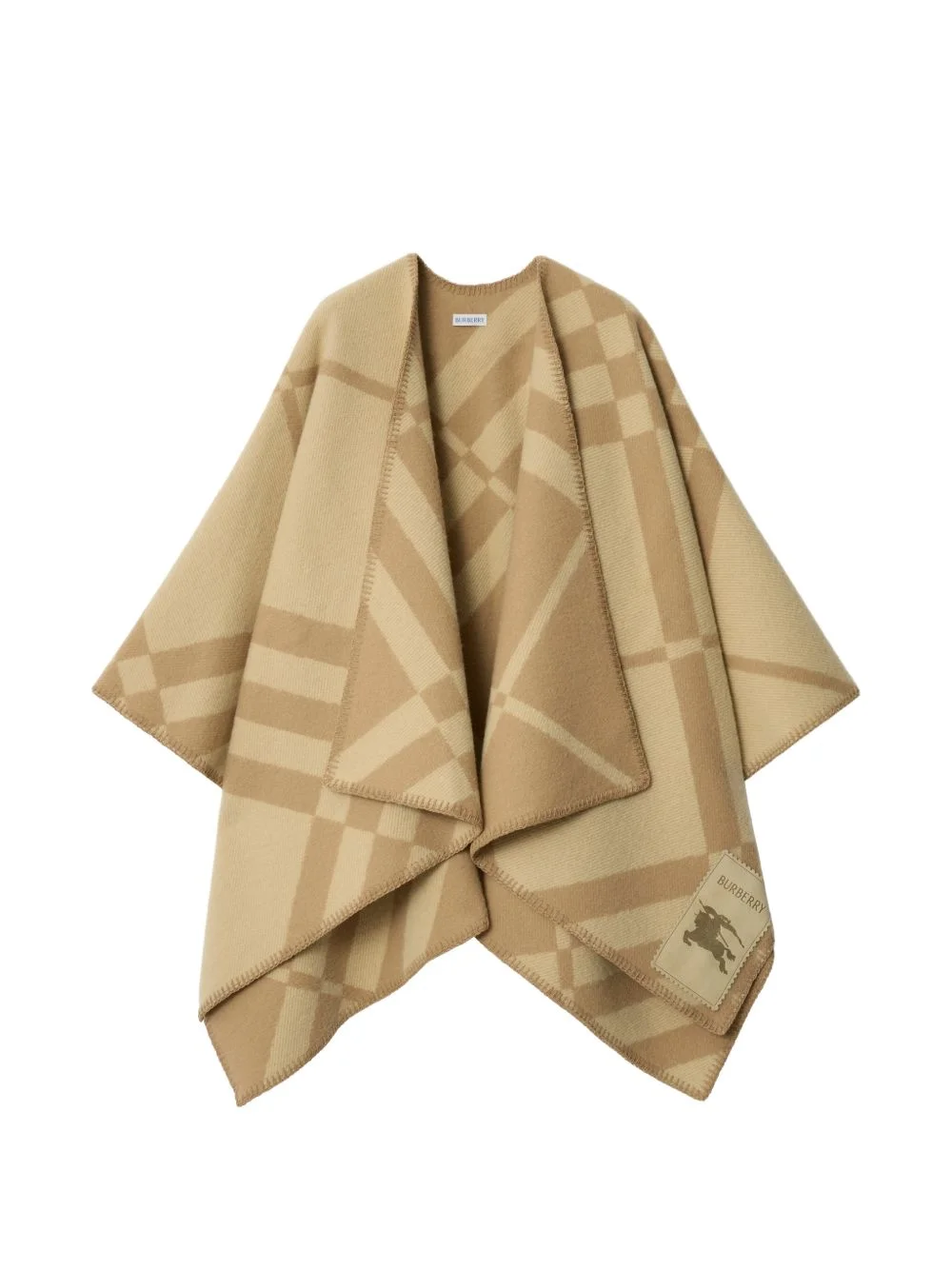 check wool cashmere cape Highlights - A cape in soft wool cashmere, jacquard-woven with a two-tone burberry check on an exaggerated scale. crafted at a scottish mill founded in 1797, the style is finished with a tonal suede label embossed with the equestrian knight design. - Blanket stitching at edges - Two-tone burberry check Made in United Kingdom Composition Wool 85%, Cashmere 15% SIZE & FIT Measurement LENGTH 55.11 in(140 cm) WIDTH 55.11 in(140 cm) Washing instructions Specialist Cleaning