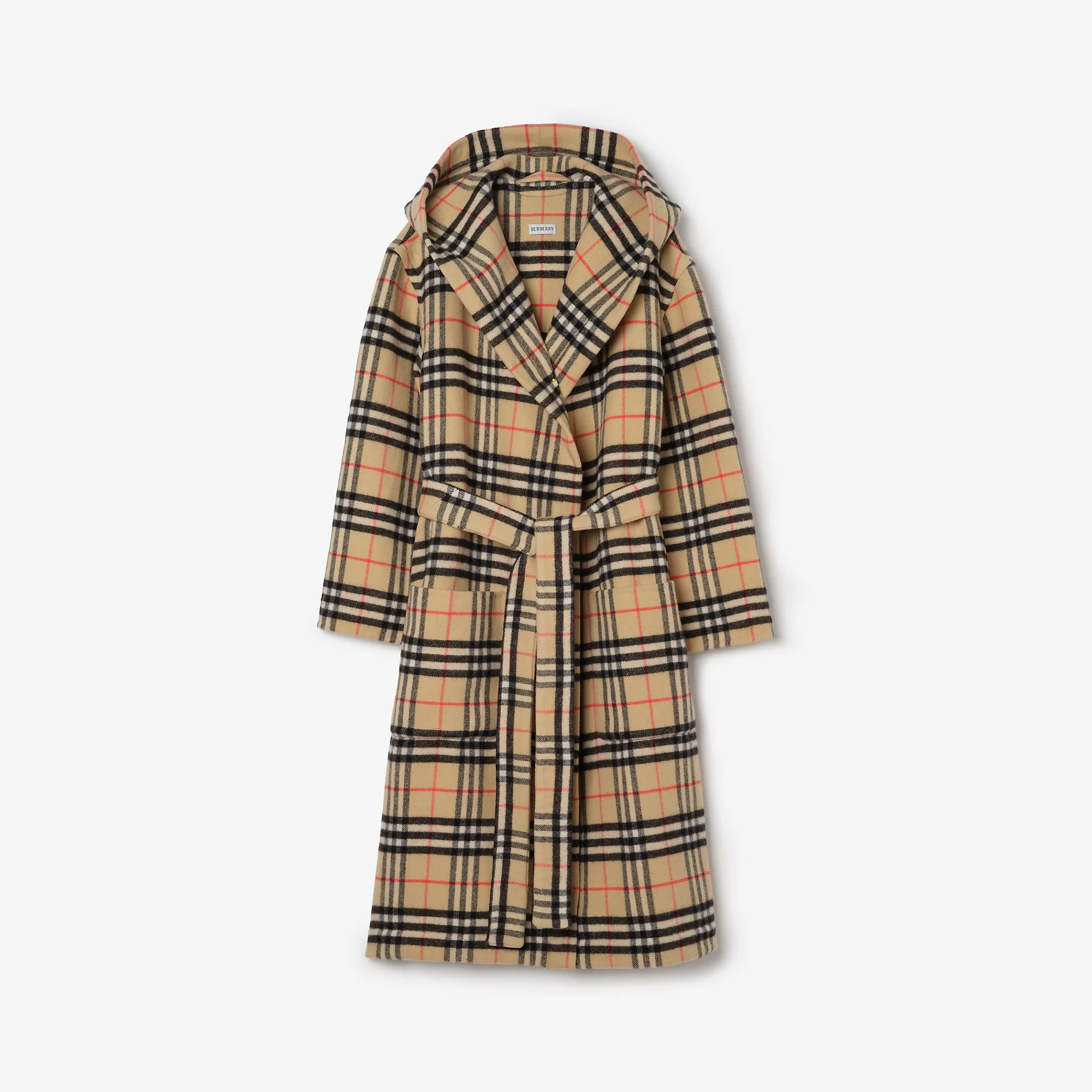 Product Details A hooded robe made in Scotland from a cosy blend of wool and cashmere. The design is woven with the Burberry Check in our signature sand beige colourway. - Self-tie belt - Side patch pockets - Item 81209671 Size & Fit - Length: 112cm/44.1in (size UK XS/S) Fabric & Care - 90% wool, 10% cashmere - Specialist dry clean - Made in Scotland