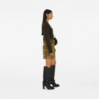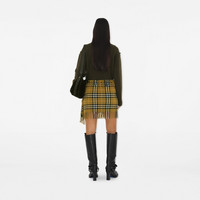 Product Details A skirt made from wool cashmere woven in Italy with the Burberry Check. The design is edged with fringing inspired by our Happy scarf and features a leather strap to adjust the fit. - Side button and B buckle closure - Item 80997161 Size & Fit - Length: 42cm/16.5in (size UK S) - Model’s height: 176cm/5ft 9in. Model wears size UK S Fabric & Care - Outer: 85% wool, 15% cashmere - Lining: 100% viscose - Buttons: buffalo horn - Specialist dry clean - Imported