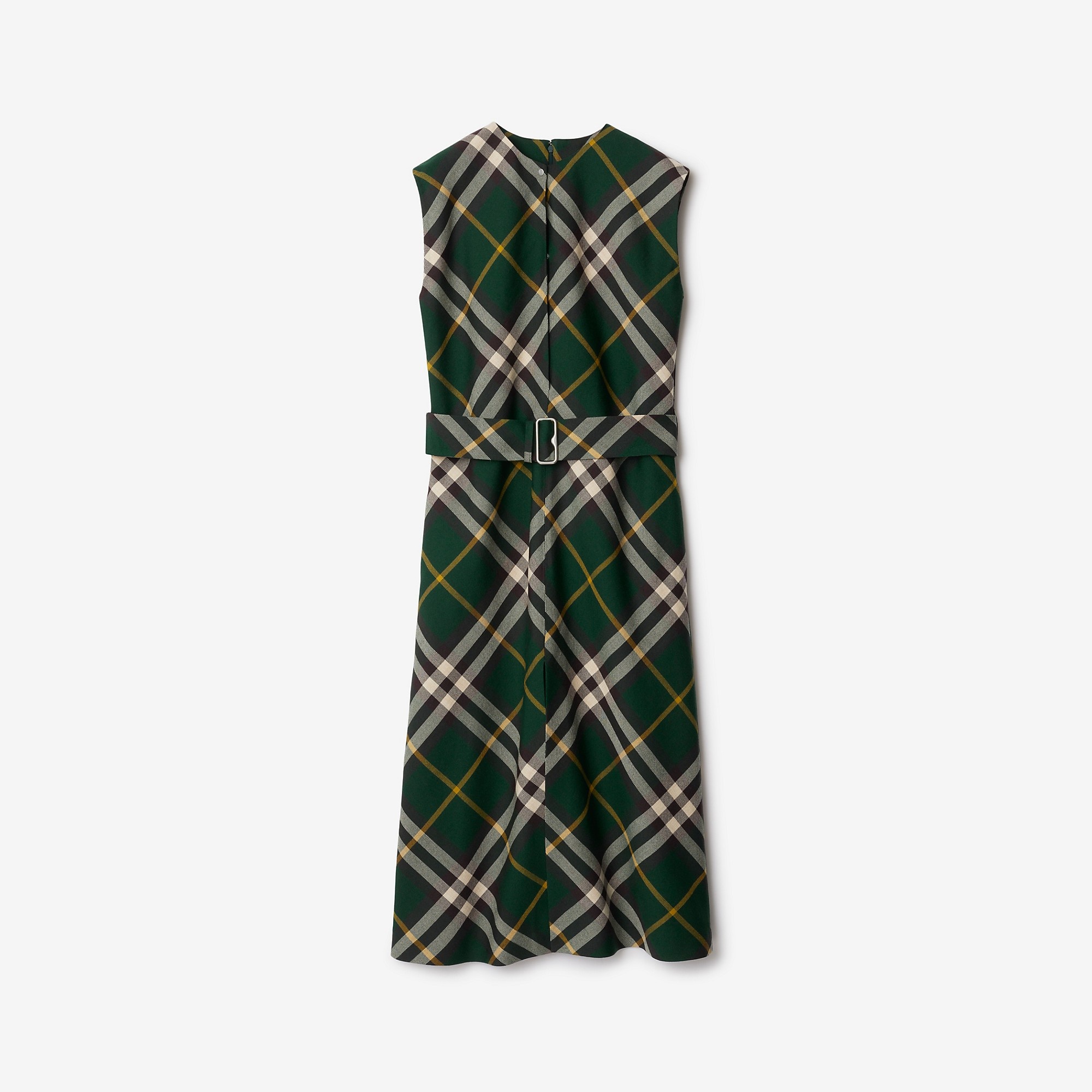PRODUCT DETAILS A sleeveless dress in wool, woven with the Burberry Check. Cut to a regular fit, the style has a press-stud placket and detachable belt to adjust the shape. - Length: 125cm/49.2in (size UK 6) - Model's height: 180cm/5ft 11in. Model wears size UK 6 Regular fit 100% wool Specialist dry clean Imported Item 80830571