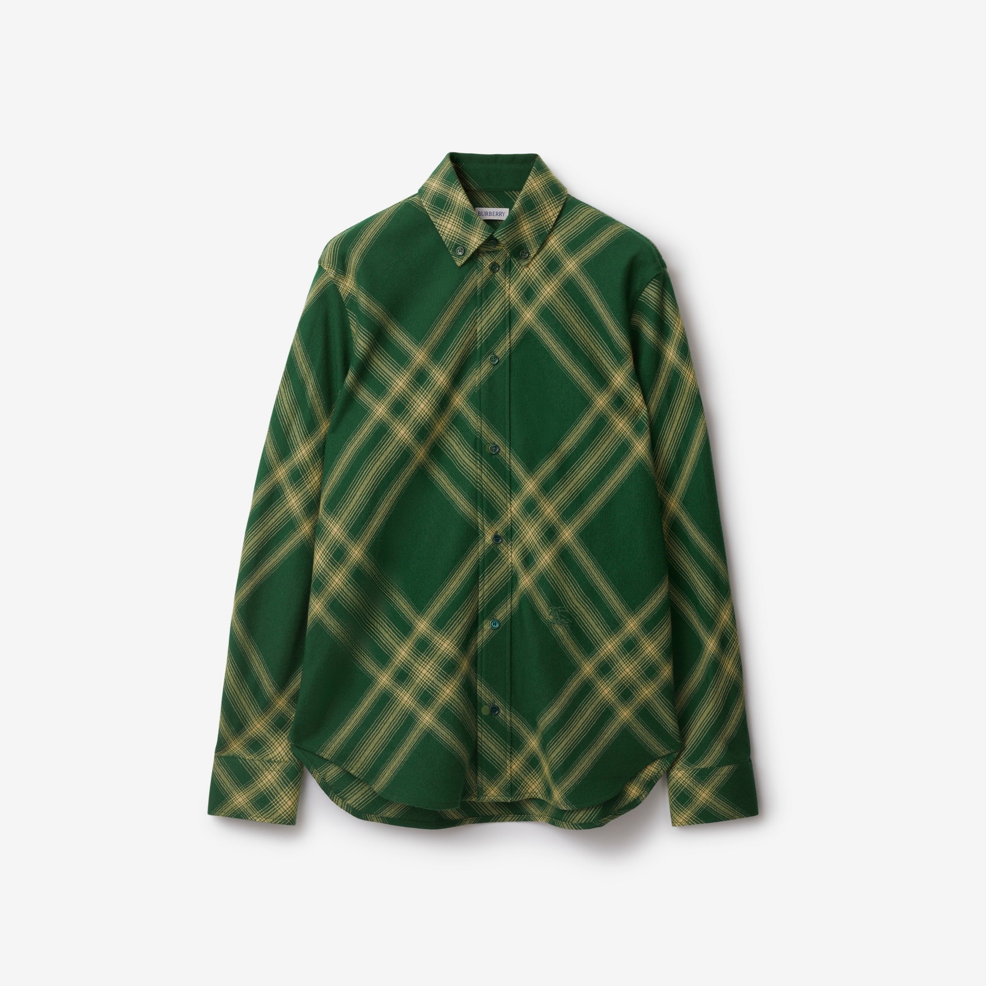 PRODUCT DETAILS A button-down collar shirt in wool flannel, woven with a seasonal check. The design is tailored to a relaxed fit and embroidered with the Equestrian Knight Design. - Length: 72cm/28.4in (size UK 6) - Model’s height: 177cm/5ft 10in. Model wears size UK 6 Relaxed fit 100% wool Buttons: mother-of-pearl Specialist dry clean Imported Item 80835951
