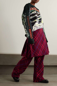 EDITORS'NOTES Making his debut as Chief Creative Officer, Daniel Lee focused on Burberry's iconic checks for Fall '23, drenching them in color. Taking cues from the traditional kilt with a leather buckle at the side, these layered pants are tailored from tonal-red and blue wool. Wear them with a soft turtleneck. SIZE & FIT - Fits true to size, take your normal size - High-rise, designed for a wide-leg fit - Adjustable tab at the waist - Mid-weight, non-stretchy fabric - Model is 175cm/ 5'9" and is wearing a UK 8 DETAILS & CARE - Tonal-red and blue wool, black leather - Button fastenings at side, concealed hook and zip fastening at front - 100% wool; buttons: 100% horn (Buffalo) - Dry clean