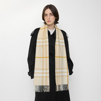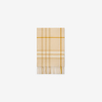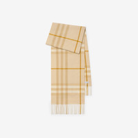 Product Details The iconic Burberry Check cashmere scarf, made in Scotland at a mill founded in 1797. Woven on traditional looms, the scarf takes more than 30 steps to complete. The fabric is washed in local spring water and brushed with teasels – dried flowers that are drawn along the surface of the cashmere to 'raise' the cloth, creating a natural lustre and ultra-soft finish. - Rectangular - Fringing at both ends - Item 81126321 Size & Fit - 168 x 30cm/66.1 x 11.8in Fabric & Care - 100% cashmere - Specialist dry clean - Made in Scotland