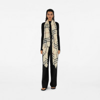 Product Details A lightweight wool scarf made in Italy. The design is woven with the Burberry Check. - Rectangular - Eyelash fringing at the edges - Item 80907201 Size & Fit - 200 x 90cm/78.7 x 35.4in Fabric & Care - 100% wool - Dry clean - Made in Italy
