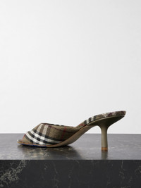 The 'London' check on Burberry's mules debuted over a century ago, first used to line the house's signature trench coats. Made in Italy from linen and leather, they have almond-shaped open toes and rest on gently fluted kitten heels. Match your pedicure to the red or purple stripes.
